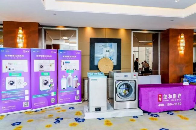 作为本次会议的参展企业之一,玺和医疗在会议现场设立了专题展台,展示了公司在智慧化污洗间、医用织物清洗消毒、患者排泄物处理等领域的产品与专业解决方案。