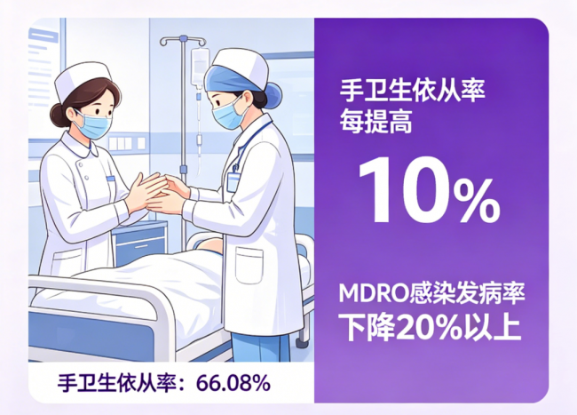 MDRO在医院的传播,往往遵循“污染环境表面→医务人员手污染→其他患者感染”的路径。研究显示,医护人员对MDRO隔离患者的手卫生依从率仅66.08%,而手卫生依从率每提高10%,MDRO感染发病率可下降20%以上。