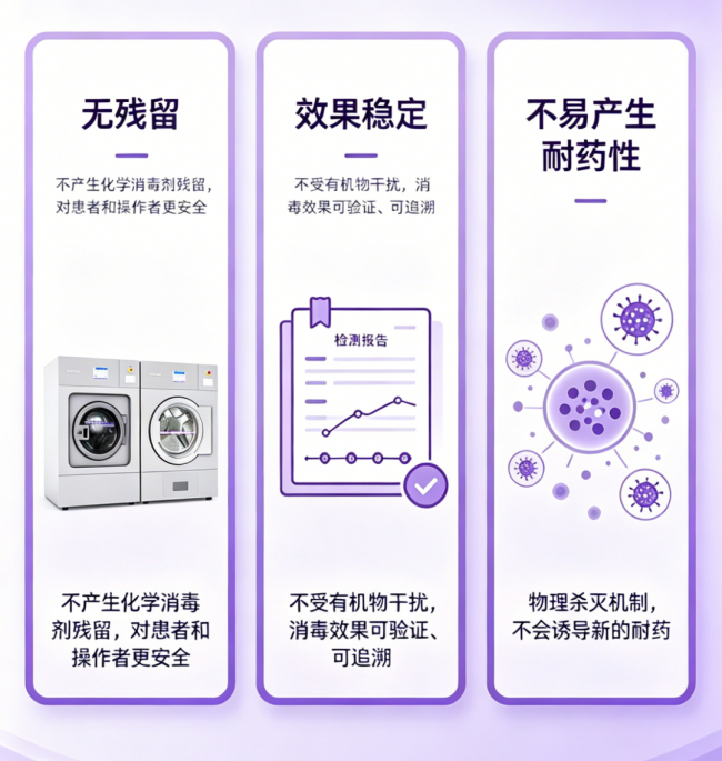 与化学消毒相比,物理热力消毒具有以下优势: